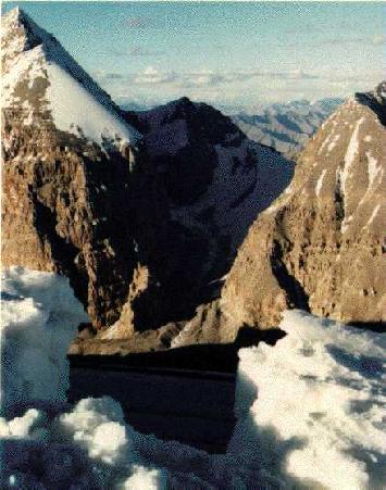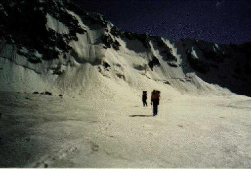юг в Китай круто падает снежно-ледовый склон. В районе ледника