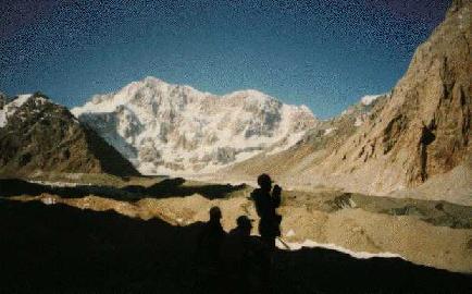 рюкзаках. Напротив нас северная стена пика Данкова. Хорошо