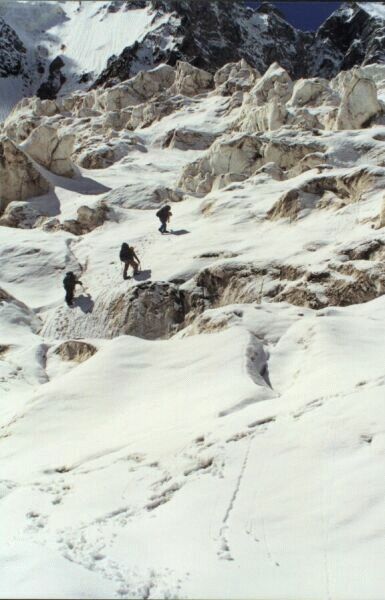 веревку. Весь спуск занял 1.5 часа. Еще за 30 минут мы доходим до ледопада.