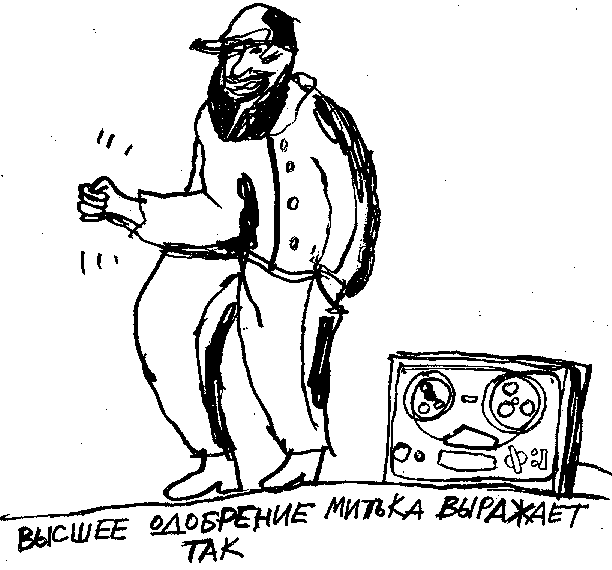 Если митек не ведет разговор сам, он сопровождает каждую фразу рассказчика заливистым смехом, ударами по коленям или ляжкам или выкриками: Улет! Обсад!” или же напротив горестными восклицаниями: