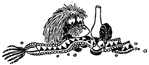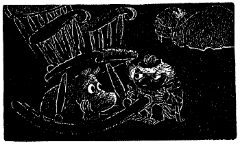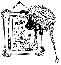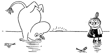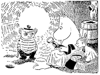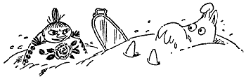 Тут Муми-тролль внезапно смолк, пронзенный взглядом крошечных глазок, уставившихся на него из-под кухонного столика. Столик
