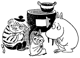 Она нашла несколько поленьев за помойным ведром. А из своего потайного шкафа вытащила смородиновый сок, какой-то порошок и фланелевый шейный платок. Муми-мама готовит