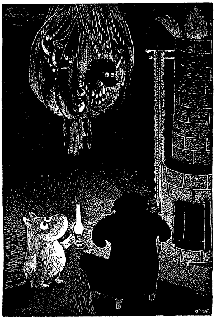"Вот чудно! -- удивился бельчонок. -- Прежде этой картонки здесь не было. Должно быть, тут какая-то ошибка. А может, это совсем не та пещера? А я, может, тоже не тот самый бельчонок, хотя мне не хотелось бы этому верить".