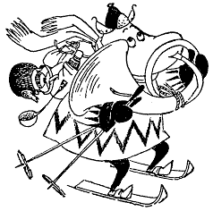 -- Да, а потом можно еще кататься по снегу, -- продолжал Муми-тролль. -- Это называется -кататься на лыжах. Съезжаешь прямо вниз, как молния, в огромном облаке снега, и если быть невнимательным, можно даже разбиться насмерть!