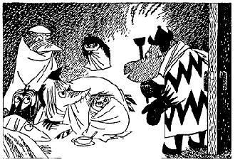 Но грелки для кофейника теперь уже больше не было. Не было даже кофейника. Однако Муми-мама этого не заметила. На всякий случай она пробормотала маленький волшебный стишок над лекарством от простуды. Стишку этому она выучилась у своей бабушки, маминой мамы. Потом она пошла в гостиную и сказала: