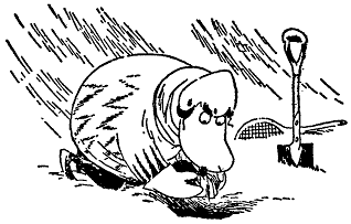 Внезапно Муми-троллю стало так радостно, что ему захотелось остаться одному, и он медленно поплелся к дровяному сараю.