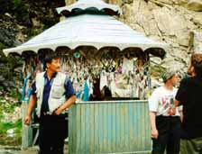 Красивый бурхан с водопадом (С.В. - действительно очень красивое место, единственный бурхан, у которого стоило остановиться). Много архе. Фотографируем. Скоро стемнеет. На беседке вместе с привязанными ленточками прибит компакт с софтом.
