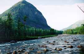 (Д.Г. - Стояли на правом берегу, низком, рядом с полувысохшим пойменным озерцом. Здесь Стаса в одиночку отправили ловить рыбу, с каковым заданием он успешно справился, поймав около десятка хариусов.)