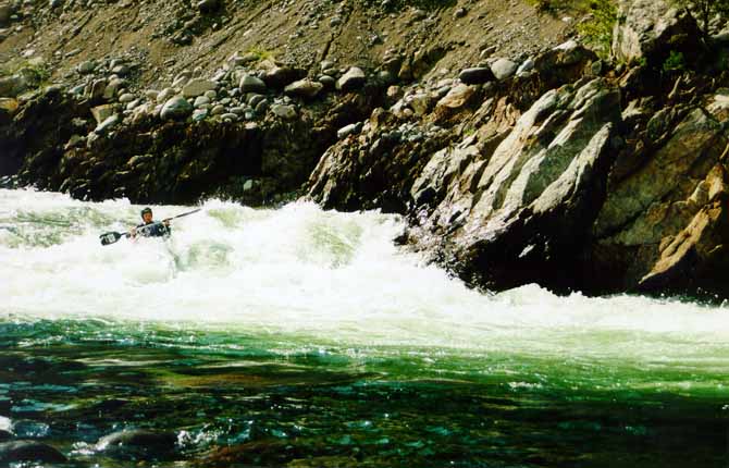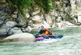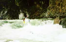 Со Стасом вышло веселее. Выходя на струю, Стас кильнулся. Так как Стас принципиально не хочет вставать рычагом в реальных условиях (а винтом не умеет), он отстрелился. Мы стали волноваться, как бы его не затащило в прижим, и тут Стас стал вытворять такое...