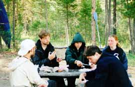 (Д.Г. - Вообще говоря, рыбу в этот день ловили все, кому не лень. Мачулинские бойцы ловили на слепня, я - нахлыстом, Стас и Саня спиннингом на вертушку. На всей Хойто-Оке при ловле хариуса спиннинг и нахлыст показали примерно одинаковую эффективность, никакой другой рыбы в этом походе нам поймать не удалось.)