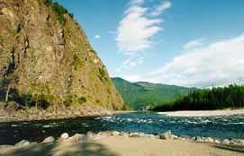 Поезд прибыл на ст. Слюдянка-1 с большим опозданием в 10.00 по московскому (С.В. - по расписанию прибытие в Слюдянку в 8:30 по московскому времени, разница с Москвой +5 часов). Увы, мечта искупаться в Байкале после долгой и весьма нетрезвой дороги умерла сразу. Прибил сию мечту стоящий на станции в ожидании опаздывающего поезда заказной автобус с нервной тетей кондуктором. Автобус встречал группу горников, идущих куда-то в район Ниловой Пустыни (часть горников прилетела самолетом раньше и заказала этот автобус). Тетя кондуктор стала еще более нервной и злой, узнав, что горники предпочли подвернувшийся УАЗик. От полной депрессии ее спасли две другие подвернувшиеся группы: мы и плотовики, идущие на Китой-Онот. За дорогу до Монд запросили 70 руб. за билет и 35 руб. за багаж с человека. Расценки по тамошним условиям весьма божеские, и мы не раздумывая согласились. Слегка потормозив у автобазы, автобус ехал достаточно шустро и почти без остановок. На границе Тункинского национального парка нас остановили местные силовые органы и произвели такой вот диалог с водителем: