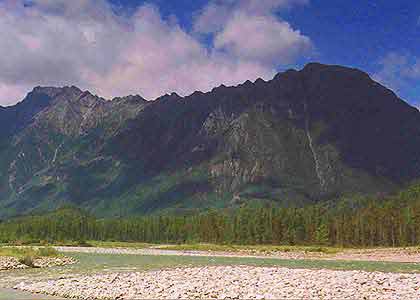 медленно. Он почти дошел до Шумака, но испугался, что пройдет его, и повернул обратно. Мы дали в сопровождающие Ромку, а сами пошли вперед. После нашей стоянки тропа вскоре идет по крутым склонам над ущельем, а затем спускается в долину.
